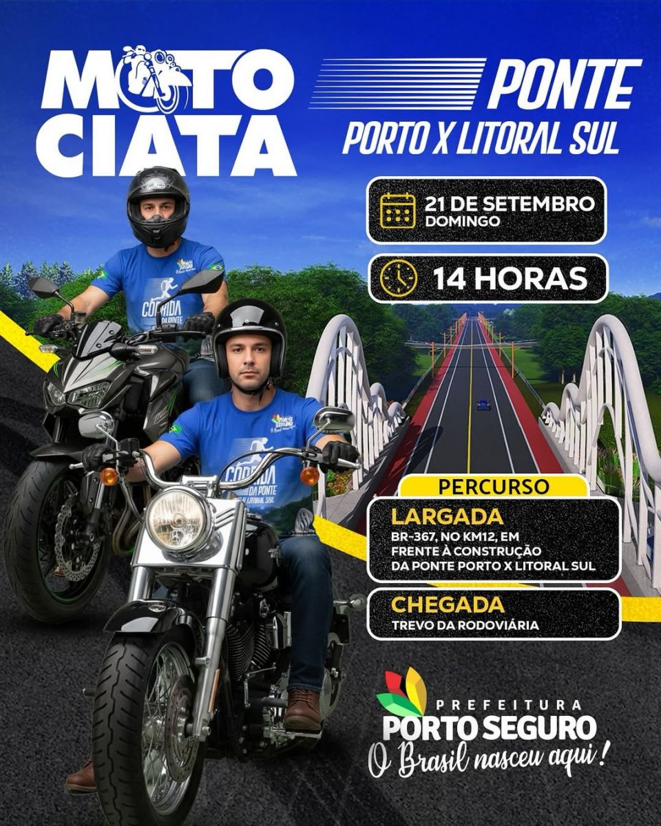 A prefeitura de Porto Seguro, eminente nota sobre as mundanças no trânsito no próximo domingo, dia 21/09. As mudanças acontecem por conta da 'Corrida da Ponte', evento que vai ocupar parte da BR-367, em Porto Seguro.