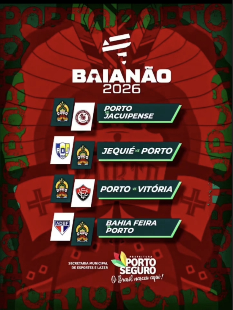 Já o duelo contra o Bahia acontece na Arena Fonte Nova, nos dias 31 de janeiro ou 1º de fevereiro, válido pela quinta rodada. Após a excelente campanha no Baianão 2025, em que terminou na 5ª colocação, o Porto fará cinco jogos em casa e quatro fora nesta edição.