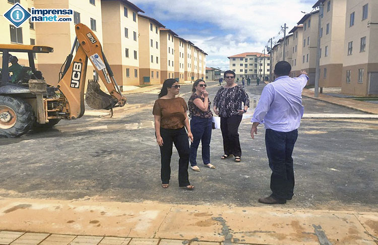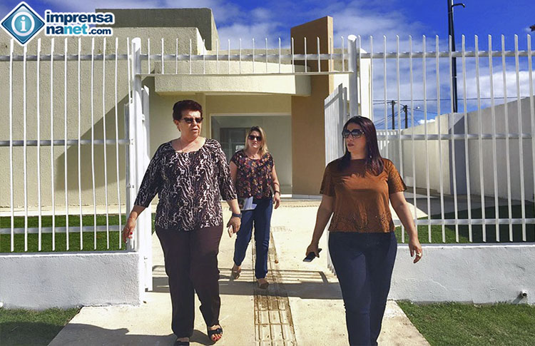 A prefeita Cláudia Oliveira participou da vistoria do empreendimento acompanhada da Secretária do Trabalho e Desenvolvimento Social, Ondina Oliveira, Suelen Lacerda (Coordenadora de Habitação Municipal) e dos engenheiros Kleber e Leandro da construtora responsável pela obra.