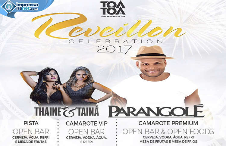 O Réveillon 2017 do Complexo de Lazer Tôa Tôa este ano tem como atrações a Banda Parangolé e Thaine & Tainá. O seu vocalista, Tony Salles promete o agitar até o sol raiar, além do palco principal, o ambiente com DJ e boate estará à espera dos convidados, além da maior novidade do Sertanejo universitário, as Rainhas do Camarote, que prometem ostentar beleza neste réveillon.