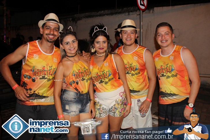 Disparado o melhor bloco carnavalesco de Porto Seguro em 2017, o “Bloco Esquenta” levou animação, alegria e INOVAÇÃO para o Circuito da Folia. Único bloco a servir cerveja grátis para seus participantes durante todo o percurso, o “Esquenta” começou seu aquecimento às 17h00 na Rua do Golfo ao lado da Praça do Relógio as 17:30 com animação da Banda 100 Cotrole.