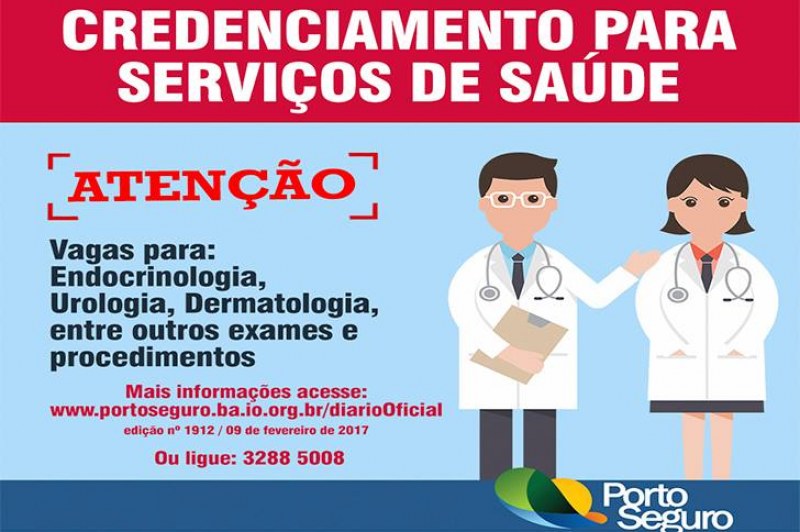 A Prefeitura de Porto Seguro, por meio da Secretaria de Saúde, pela Portaria nº003/2017, torna público a realização do chamamento público 001/2017, para credenciamento de instituições de saúde, em diversas especialidades, direcionadas a prestação de serviços complementares ao Sistema Único de Saúde, SUS, regido pela Lei Federal nº8.666, de 21 de junho de 1993.