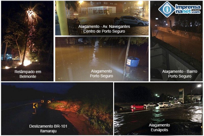 Em Belmonte, internautas registraram árvores queimando após atingida por raios, na BR-101 nas proximidade da cidade de Itamarajú, deslizamento interditou parcialmente a pista. Em Eunápolis, centro e bairros tiveram ruas alagadas, causando trastorno a moradores.