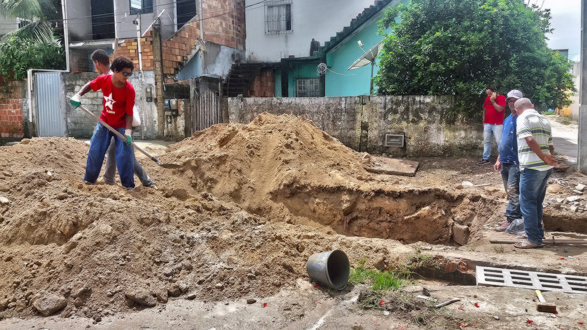 Bairro: Os arredores da Escola Chico Mendes, no bairro Mirante, receberam obras de intervenção para evitar alagamentos nos períodos de chuva forte. Na rua em frente ao colégio, foi feita a desobstrução e limpeza de toda rede pluvial, além do aumento da capacidade de captação de água.