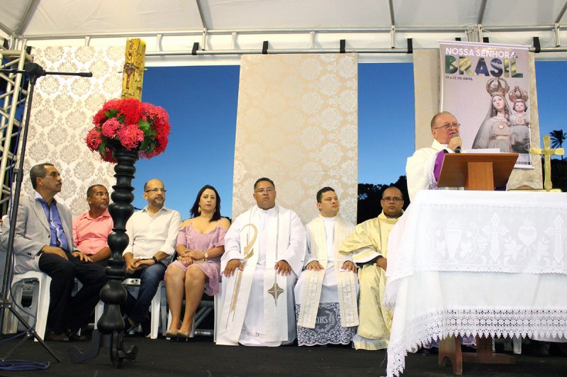 A Praça das Pitangueiras foi palco da missa solene em homenagem ao Descobrimento do Brasil no final da tarde deste sábado, 22. Celebrada pelo bispo D. José Edson Santana, contou com a presença de diversos párocos, da prefeita de Porto Seguro, Cláudia Oliveira; do secretário de Justiça, Direitos Humanos e Desenvolvimento Social da Bahia, Carlos Martins; do prefeito de Eunápolis, Robério Oliveira; do vereador Cido, representando a Câmara Municipal, além de secretários, vereadores, autoridades e muitos fiéis.