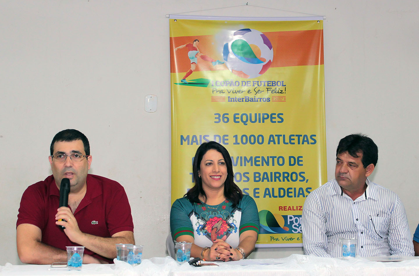 Neste fim de semana os amantes de futebol terão um novo compromisso em Porto Seguro. Trata-se da abertura do 1º Copão Interbairros de Futebol Amador – Pra Viver e Ser Feliz, na manhã de domingo, 11/6, no Estádio Municipal Agnaldo Bento, no Centro. O primeiro jogo será entre as equipes Baianão Esporte Clube x Casas Novas Futebol Clube. O evento foi lançado neste sábado (10), pela prefeita de Porto Seguro, Cláudia Oliveira, que também deu posse ao novo secretário de Esportes e Lazer, Enildo Gama (Roló).
