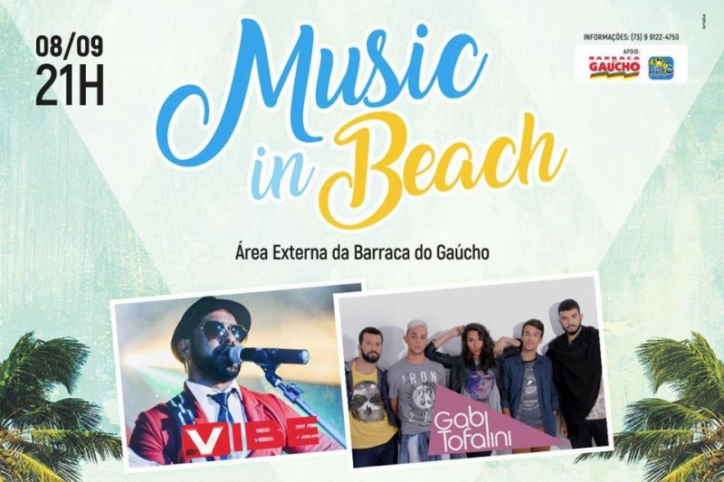 Venha curtir musica de qualidade em um dos ambientes mais aconchegantes de Porto Seguro, a Barraca do Gaúcho, sábado 09/08. Mister Vibe abre a noite musical a partir das 21h00 e em seguida Gabi Tofalini comanda o “Music In Beach 2017”