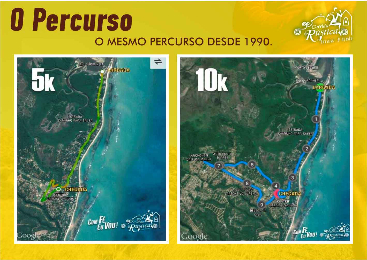 A LARGADA, CORRIDA 10K. CORRIDA 5K - Será às 15h00 no Porto das Balsa- Apaga Fogo-Arraial d’Ajuda Porto Seguro, Bahia, com qualquer condição climática, conforme percurso detalhado divulgado no site oficial do EVENTO.