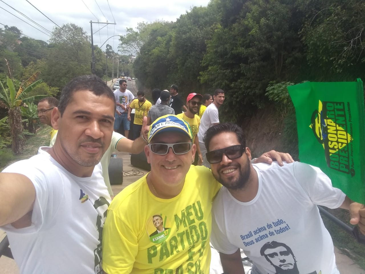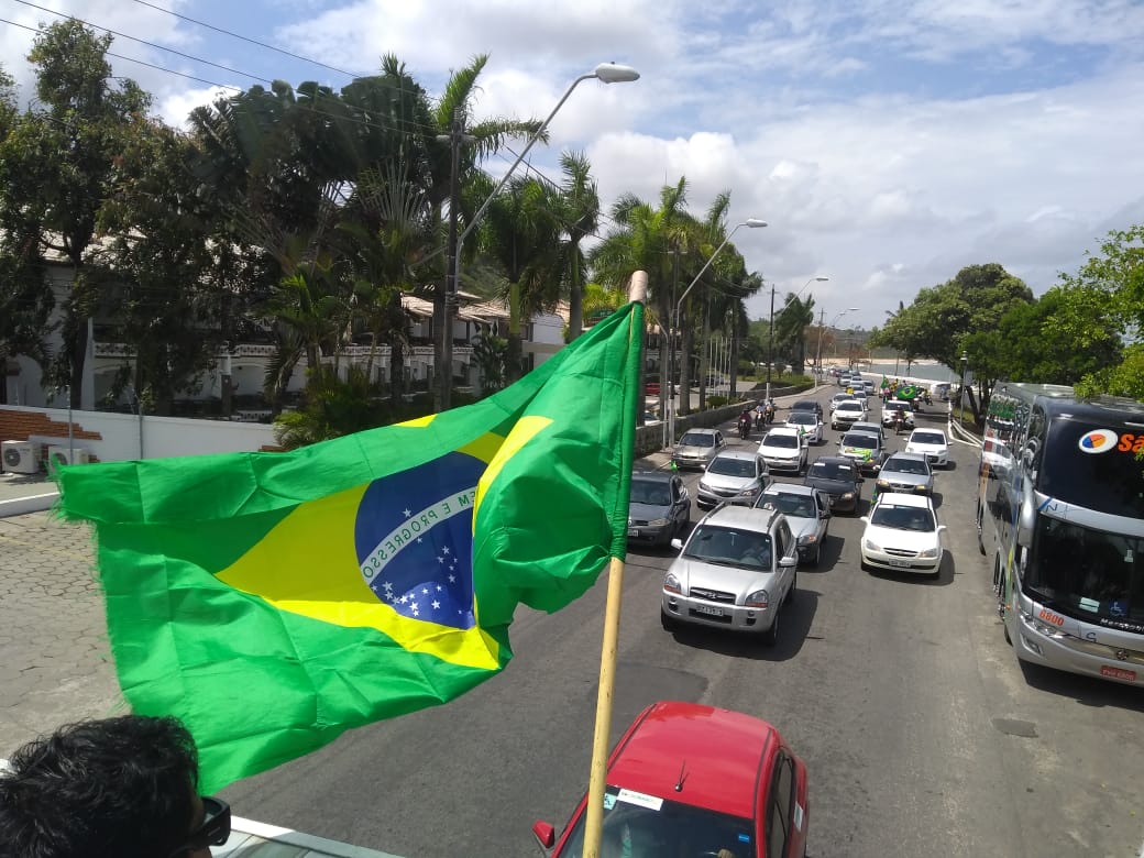 No final da manhã deste sábado 27/10, voluntários simpatizantes do presidenciável Bolsonaro #17 promoveram uma grande carreata pelos bairros e principais ruas do centro de Porto Seguro. Centenas de motos e carros companhado por um mine trio elétrico exaltavam a qualidade do candidato do PSL e as mazelas do PT e partidos aliados que colocaram o Brasil em um mar de lama de corrupção com ROUBO de Bilhões de Reais dos cofres púbicos.