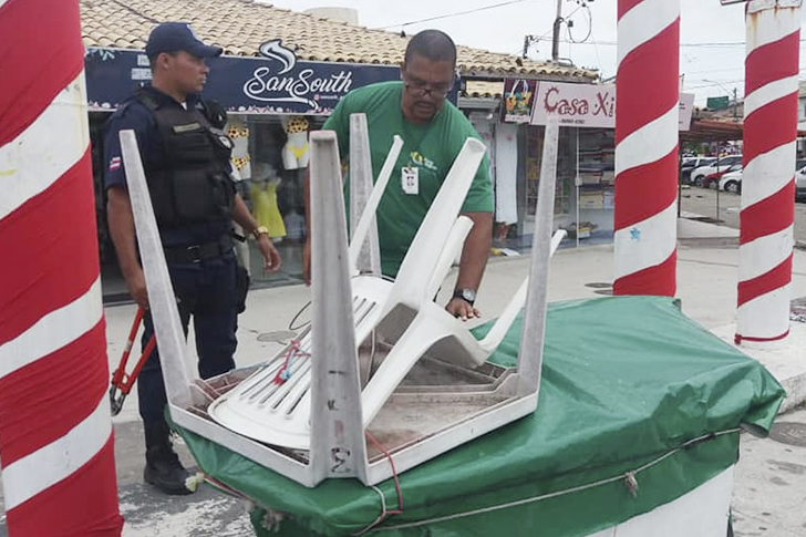 Comandada pelo subsecretário Josedam Nicácio que conta com o apoio da Guarda Municipal, a equipe de concessões e serviços públicos atuam incansavelmente para coibir esta prática ilegal. Estes ambulantes CLANDESTINOS que chegam nesta época do ano, comercializam os mais diversos tipos de produtos, desde alimentos sem inspeção sanitária, produtos sem certificado do IMETRO e até mesmo produtos contrabandeados.