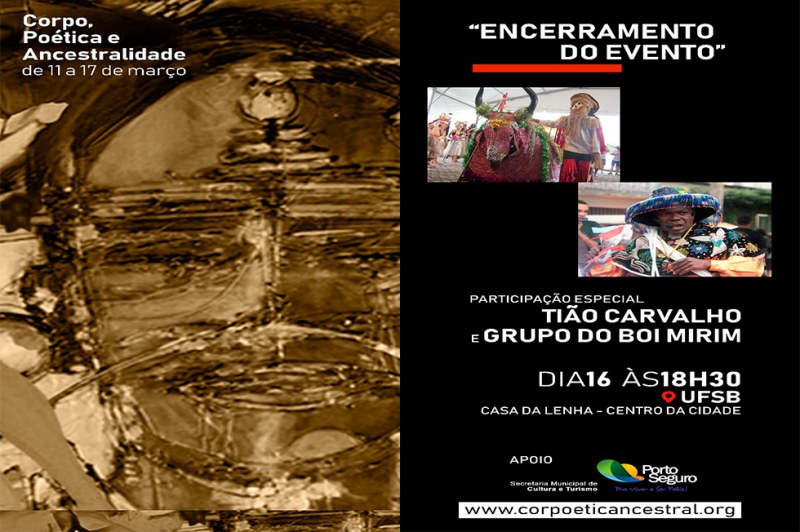 Nesta sexta-feira, 16 de março, a Casa da Lenha será palco da cerimônia de encerramento do evento Corpo, Poética e Ancestralidade, realizado pela Universidade Federal do Sul da Bahia – UFSB. A cerimônia tem início às 17h e contará com diversas atividades culturais, tal como roda de capoeira, apresentação do Mestre da cultura popular brasileira, Tião Carvalho e do grupo cultural Nossa Senhora das Graças.