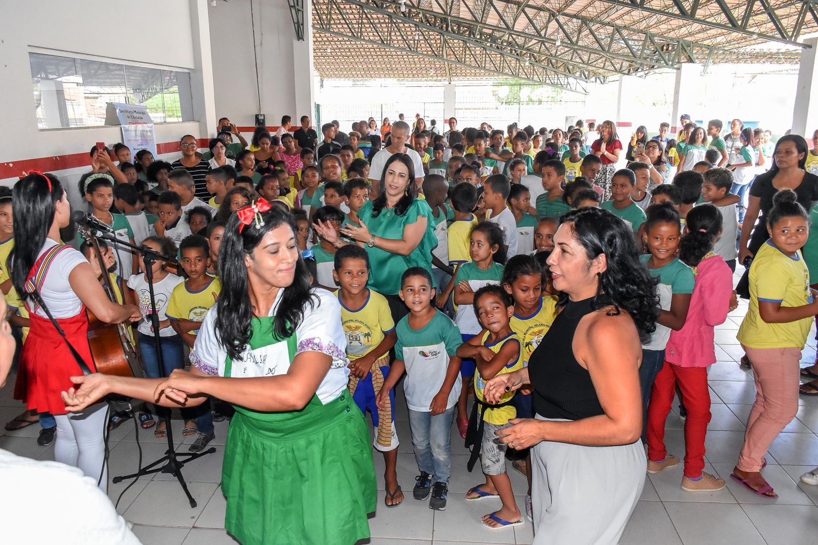 Crianças, adolescentes e educadores da Escola Helena Rebocho, na Vila Jardim, receberam com entusiasmo o projeto Secretaria Itinerante, lançado na manhã de 20/05, pela Prefeitura de Porto Seguro. A proposta foi apresentada pela prefeita Cláudia Oliveira e a Secretária de Educação, Janis Souza, com a presença dos alunos, da diretora Marilene Cardoso e de diversos vereadores.