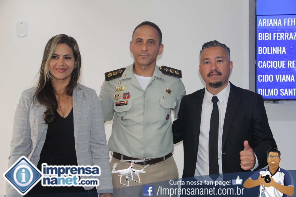Transporte complementar - Em seu pronunciamento, a presidente da CMPS, Ariana, agradeceu a presença do Tenente-coronel, Anacleto França, pela presença e o parabenizou pelo êxito na segurança pública no município. Ariana também falou sobre os transtornos causados pela chuva nas estradas e ruas de Pindorama e solicitou à secretaria competente para agilizar as licitações. “A situação das estradas em Pindorama está caótica”, disse.