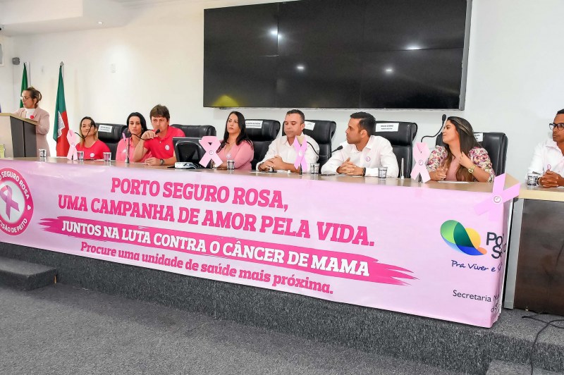 Em uma atmosfera de celebração ao direito de viver, engajados no enfrentamento contra o câncer de mama, com abordagem central "Esta atitude pode salvar sua vida", a Secretaria de Saúde lançou oficialmente na tarde do dia 1/09, na Câmara de Vereadores, a 7° edição do exitoso Porto Seguro Rosa, projeto que tem mobilizado a sociedade desde 2013, ano de implantação da campanha, tendo a finalidade de promover ações de prevenção de doenças, diagnóstico precoce e tratamento oportuno contra o câncer de mama e colo do útero. O evento contou com a participação dos servidores da saúde, autoridades do poder legislativo, secretariado do governo e sociedade civil.