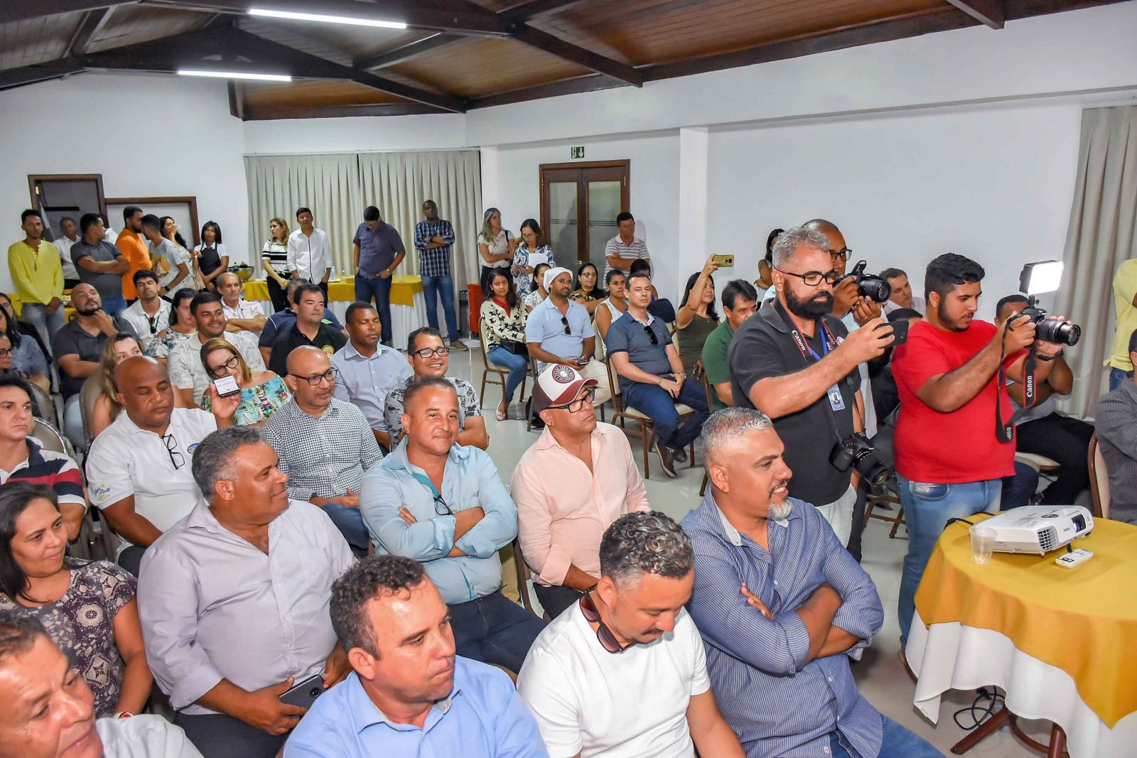 A prefeita Cláudia Oliveira, anfitriã do evento, ao lado do secretário de Relações Institucionais, Maurício Pedrosa, chefe de gabinete, Josemar Siquara, superintendente de Turismo, Patrícia Martins, superintendente de Cultura, Sérgio Mehlem, e líder do governo na Câmara, vereador Dilmo Santiago, recebeu a imprensa, secretários e convidados para o lançamento oficial da programação. Estavam presentes também a presidente da Câmara, Ariana Fehlberg, e os vereadores Rodrigo Borges, Bibi Ferraz, Wilson Machado, Bolinha, Cido Viana, Geraldo Couto, Lázaro e Hélio Navegantes.