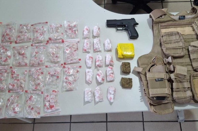 Durante as diligências, os policiais identificaram um indivíduo que, ao perceber a aproximação das guarnições, fugiu para o interior de um imóvel e abandonou uma mochila. No local, foram encontradas diversas porções de substâncias análogas a entorpecentes, já embaladas e prontas para comercialização, além de um simulacro de arma de fogo e outros materiais relacionados à atividade ilícita.